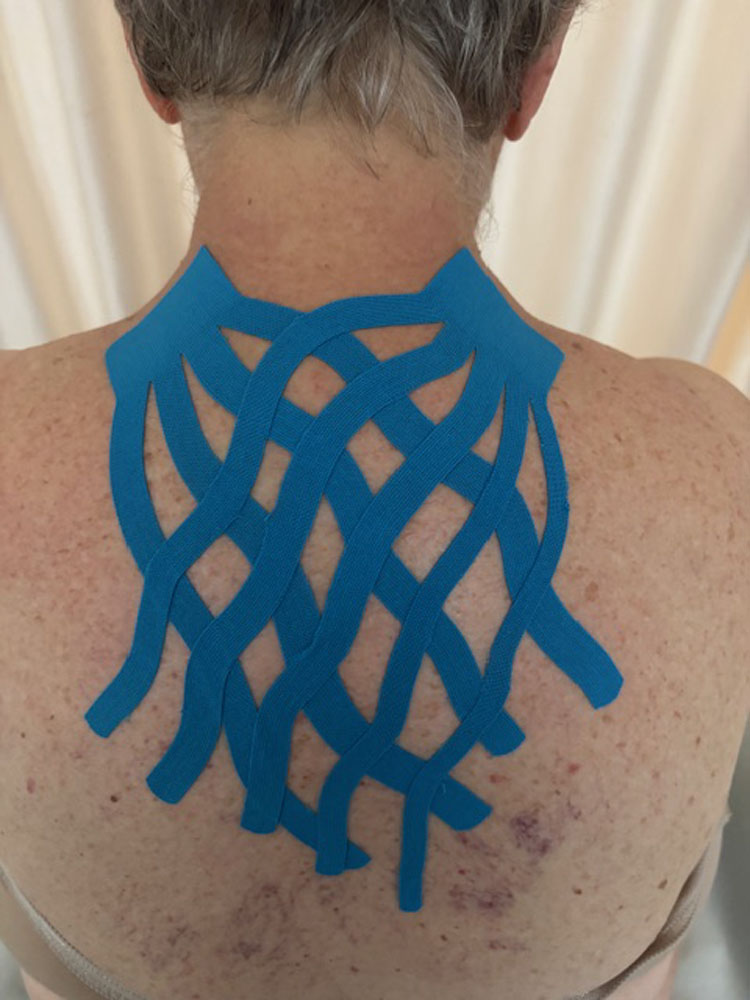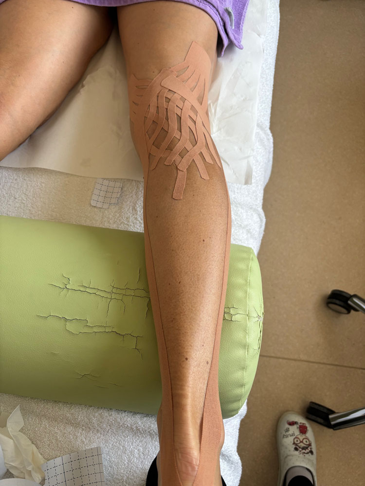 Kineziotaping je metoda lepljenja posebnih elastičnih trakov na kožo, ki podpirajo mišice, sklepe in vezi brez omejevanja gibanja. Trakovi izboljšajo prekrvavitev, zmanjšujejo bolečino, pospešujejo regeneracijo tkiv ter pripomorejo k pravilnemu gibanju.